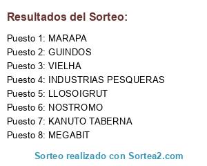 Lista de participantes: MARAPA, NOSTROMO, LLOSOIGRUT, MEGABIT, INDUSTRIAS PESQUERAS, VIELHA, KANUTO TABERNA, GUINDOS.