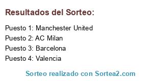 Lista de participantes: Valencia, Manchester United, Barcelona, AC Milan.