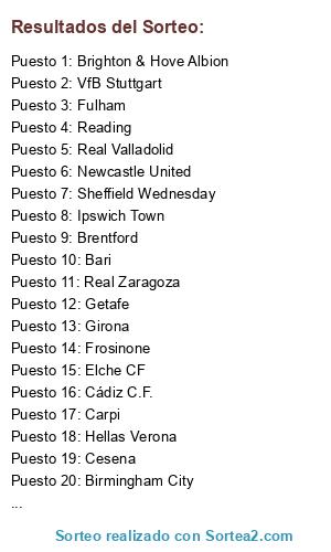 Lista de participantes: Levante UD, Real Valladolid, Getafe, Girona, Rayo Vallecano, Brighton & Hove Albion, Sheffield Wednesday, Reading, Norwich City, Fulham, Wolverhampton Wanderers, Derby County, Birmingham City, Queens Park Rangers, Newcastle United, Leeds United, Aston Villa, Bari, Hellas Verona, 1860 München, VfB Stuttgart, Hannover 96, Elche CF, CD Tenerife, Real Zaragoza, Cádiz C.F., Gimnàstic de Tarragona, Real Oviedo, UD Almería, Nottingham Forest, Ipswich Town, Bristol City, Brentford, Huddersfield Town, Cardiff City, Carpi, Stade de Reims, Frosinone, Cesena, SD Huesca.