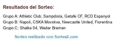 Lista de participantes: Napoli, Weder Bremen, Shalke 04, Getafe CF, CSKA Movskva, Fiorentina, RCD Espanyol, Athletic Club, Sampdoria, Newcastle United.