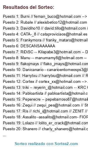 - Burni // fernan_buco@hotmail.com --> Sevilla - Rubale // alexisbetico12@hotmail.com --> Tottenham