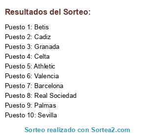 Lista de participantes: Cadiz, Betis, Valencia, Sevilla, Granada, Celta, Athletic, Real Sociedad, Palmas, Barcelona.