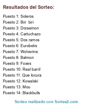Resultados del sorteo: