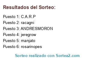 Lista de participantes: chelobest, mou27, albert, arkuan, mario_lakd, juanmarchi8.