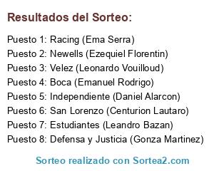 Lista de participantes: Lucas Queiroz / Palmeiras, Victor Fabila / NACIONAL, Flavio Betancur / botafogo, Ivan Casa / Newells, Nico Varela / Huracan, Russo Carlos Ariel / RIVER, Jonas Florindo / Cruzeiro, Marcelo Seifert / Peñarol, Francisco Orellana Galvez / Once Caldas, Icaro Pes / CORINTHIANS, Rodri Zamora / Racing, sebastina pes / millonarios, Leandro Scatalon / Belgrano, Seba Dominguez / SAN LORENZO, Maxii Xeneize / Atletico Nacional, Rodolfo roguero / Independiente de Santa Fe..