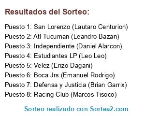 Resultados del sorteo: