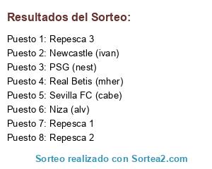 Lista de participantes: Niza (alv), Real Betis (mher), PSG (nest), Sevilla FC (cabe), Newcastle (ivan), Repesca 1, Repesca 2, Repesca 3.