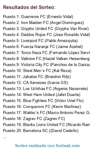 - Puesto 17: Wakko´s FC (Marco Antonio Perez Garces)