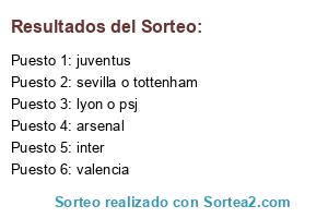 Lista de participantes: valencia, arsenal, lyon o psj, sevilla o tottenham, inter, juventus.