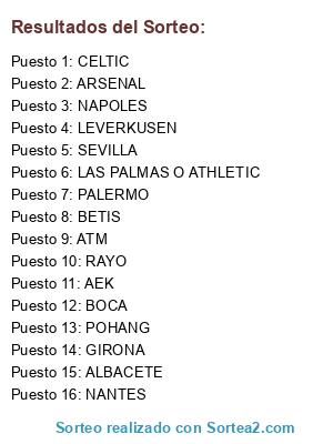 Resultados del sorteo:
