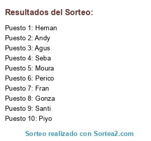 Lista de participantes: Agus, Andy, Fran, Gonza, Hernan, Moura, Perico, Piyo, Santi, Seba.