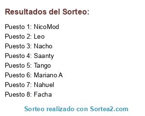 Lista de participantes: Nacho, NicoMod, Nahuel, Tango, Leo, Mariano A, Facha, Saanty.