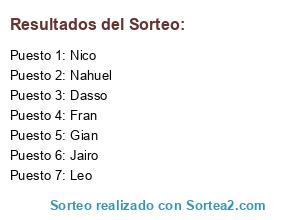 Resultados del sorteo: