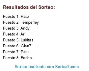 Lista de participantes: Ari, Facho, Andy, Palu, Pato, Lukitas, Gian7, Temperley.