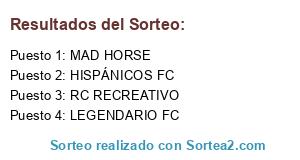 Lista de participantes: HISPÁNICOS FC, RC RECREATIVO, MAD HORSE, LEGENDARIO FC.