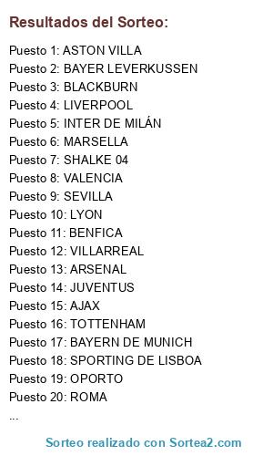 Lista de participantes: INTER DE MILÁN, BAYERN DE MUNICH, VALENCIA, SEVILLA, LIVERPOOL, MILÁN, JUVENTUS, LYON, TOTTENHAM, OPORTO, BENFICA, VILLARREAL, BAYER LEVERKUSSEN, BORUSSIA DORTMUND, SPORTING DE LISBOA, ASTON VILLA, MARSELLA, ARSENAL, ROMA, SHALKE 04, HAMBURGO, PSG, AJAX, BLACKBURN.