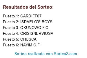 Lista de participantes: CARDIFF07, CHUSCA, CRISISNERVIOSA, ISRAELO'S BOYS, NAYIM C.F., OKUNOWO F.C..