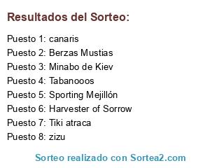 Lista de participantes: Tabanooos, Sporting Mejillón, Tiki atraca, zizu, Berzas Mustias, Minabo de Kiev, Harvester of Sorrow, canaris.