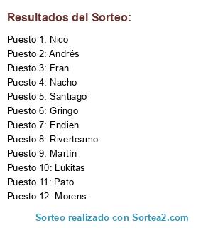 Resultados del sorteo: