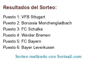 Lista de participantes: Bayer Leverkusen, FC Bayern, FC Schalke, VFB Sttugart, Borussia Monchengladbach, Werder Bremen.