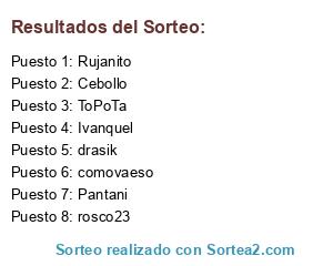 Lista de participantes: Cebollo, comovaeso, drasik, Ivanquel, Pantani, rosco23, Rujanito, ToPoTa.