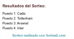 Lista de participantes: Tottenham, Cadiz, Inter, Arsenal.