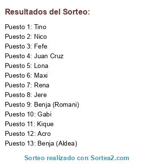 Resultados del sorteo: