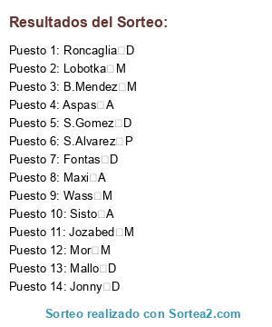 Lista de participantes: Aspas A, B.Mendez M, Fontas D, Jonny D, Jozabed M, Lobotka M, Mallo D, Maxi A, Mor M, Roncaglia D, S.Alvarez P, S.Gomez D, Sisto A, Wass M.