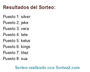 Lista de participantes: tete, kelus, sua, jeke, silver, kings, vera, titez.