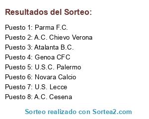 Lista de participantes: U.S. Lecce, U.S.C. Palermo, Genoa CFC, A.C. Cesena, Parma F.C., A.C. Chievo Verona, Atalanta B.C., Novara Calcio.