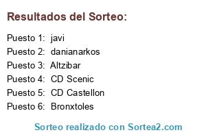 Lista de participantes: CD Castellon , danianarkos , Bronxtoles , javi , CD Scenic , Altzibar.