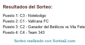 Lista de participantes: C1 - Vallirana FC, C2 - Ganador del Betilicos vs Vila Fetel, C3 - Notelodigo, C4 - Team 343.