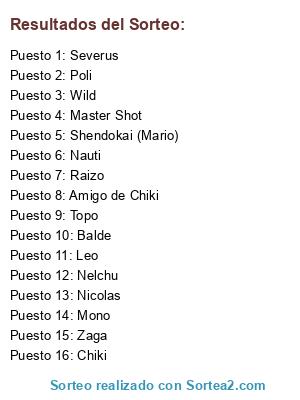 Lista de participantes: Leo, Wild, Chiki, Topo, Mono, Zaga, Severus, Nelchu, Raizo, Balde, Poli, Nauty, Nicolas, David Amigo de Chiki, Kaiokenshi, Master Shot.