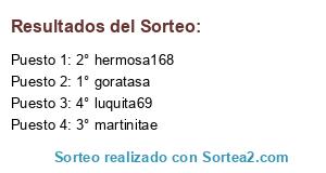 Lista de participantes: 1° goratasa, 2° hermosa168, 3° martinitae, 4° luquita69.