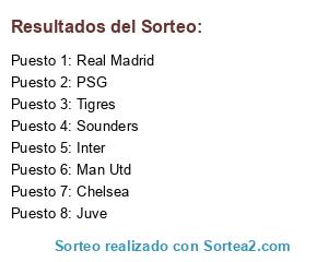 Lista de participantes: Man Utd, PSG, Juve, Inter, Tigres, Sounders, Real Madrid, Chelsea.