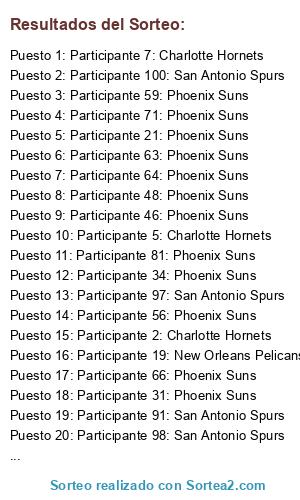 - Puesto 32: Participante 13: New Orleans Pelicans