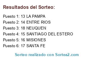 Lista de participantes: 13 LA PAMPA, 14 ENTRE RIOS, 15 SANTIAGO DEL ESTERO, 16 MISIONES, 17 SANTA FE, 18 NEUQUEN.