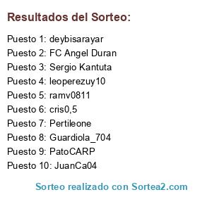 Lista de participantes: PatoCARP, FC Angel Duran, Sergio Kantuta, leoperezuy10, deybisarayar, JuanCa04, Guardiola_704, cris0,5, ramv0811, Pertileone.