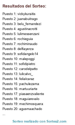 Lista de participantes: anitagiacobini, agusvitali04, juanitadlt, inerivarola, jime_eguia, felipanpee, soofialvarado, belloangie, panchihenning, soffcurci, pachulezama, cata.pascual, belu_lezcano, toiabergoglio, maguicordobaa, delfigarbarino, belu_fernandezi, claradeperez, rochieguia, luchalbani, agusmaachado, rochiminaudo, valenpoli, juanabuitrago, fedealbisu, candeberraz, delfilopezlujan, sofidangelo14, luciafliess, rochicurci, marttudeluca, solchublasco, franchualcuaz, rosariocanton, angierivarola, candepoli, luchisilveyra, cleri_priolo, mechimosquera, sofiibarrola, ailinsimaes, sofidelizalde, piasaenzvaliente, vickykuraitis, aguskuraitiss, guada_caina, trinilipera, flopybattaglia, inecarpani, martuconzi, vicky_smith22, lulatrimarco, guadalipera, angietossi, martuuriarte, lulimessenzani, maguiarevalo, agustinacrotti, vickyzapiolaa, carghiglione, cataregatas8, delfiayerza, lulicalvo_, pilidiazz, carodelpatto, nativarone, nenevolpacchio, felialcaraz, maggiecifuentes, malepoggi, juanitacruzz, maruspadafora, jazpine, sofidipietro, lulifrutos, juanita_zapiola, rochaschoo, sofialcaraz, clpants, francastafforini, amparitofasano, luleferrari.