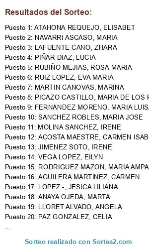 - Puesto 29: LOPEZ LOZANO, MARIA