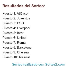 Lista de participantes: PSG, Atlético, Chelsea, Roma, Liverpool, United, Arsenal, Juventus, Barcelona, Inter.