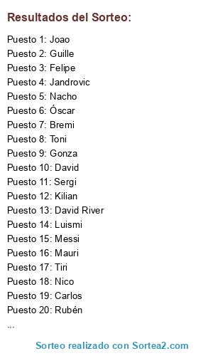 Resultados del sorteo: