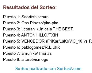 Lista de participantes: ANTONHILLO/TXIN, Oso Pinoso/pim-pim, amunike/Thorias, pablogomez/R.L.Ukic, _conan_/Unicaja THE BEST, Saori/shinchan, aitor55/ismogo, VENCEDOR (FriKar/LaKoViC_10 vs PARSIFAL/sarunas13).