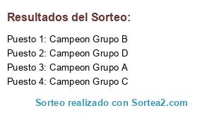 Lista de participantes: Campeon Grupo A, Campeon Grupo B, Campeon Grupo C, Campeon Grupo D.