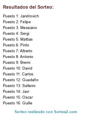 Resultados del sorteo: