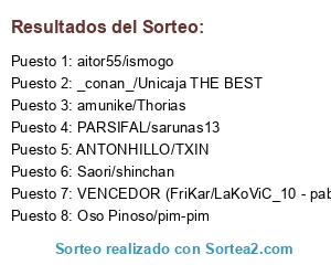 Lista de participantes: ANTONHILLO/TXIN, Saori/shinchan, _conan_/Unicaja THE BEST, Oso Pinoso/pim-pim, amunike/Thorias, aitor55/ismogo, PARSIFAL/sarunas13, VENCEDOR (FriKar/LaKoViC_10 - pablogomez/R.L.Ukic).