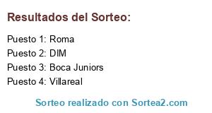 Lista de participantes: Roma, DIM, Villareal, Boca Juniors.