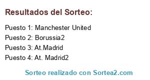 Lista de participantes: At.Madrid, Manchester United, At. Madrid2, Borussia2.