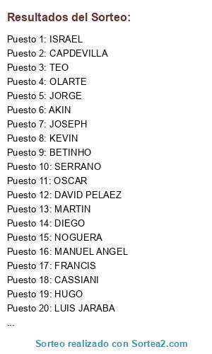 Resultados del sorteo: