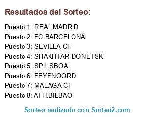 Lista de participantes: SP.LISBOA, ATH.BILBAO, REAL MADRID, SHAKHTAR DONETSK, FC BARCELONA, MALAGA CF, SEVILLA CF, FEYENOORD.